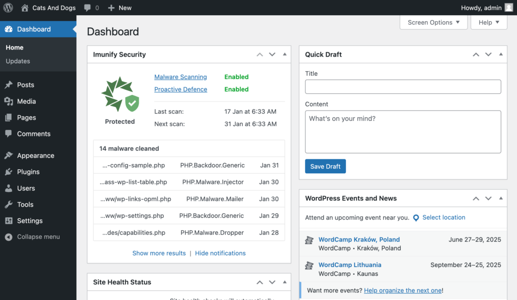 The new plugin integrates Imunify360 into the WordPress interface, making scan results, malware removals, and protection status visible in a clear and accessible manner. This allows site owners to stay informed about their site’s security without needing to access their hosting account.