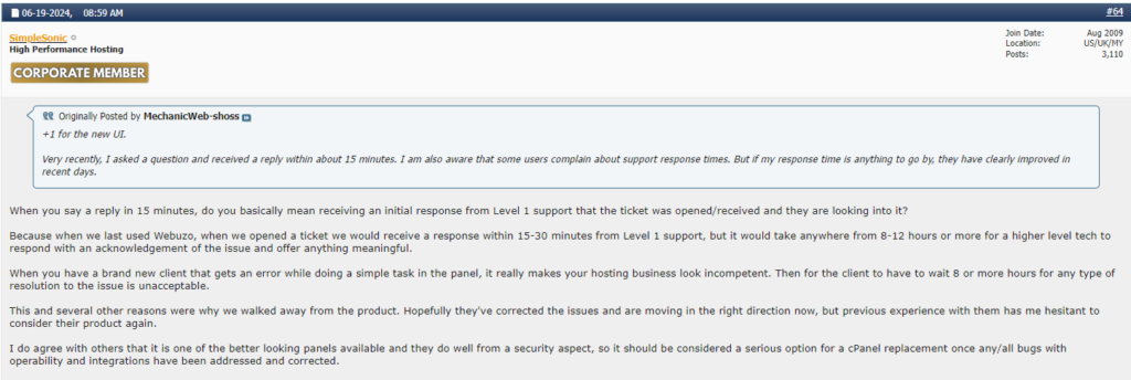 Webuzo needs to sort its forum and support out. It doesn’t look professional/fast enough.” – Forum User